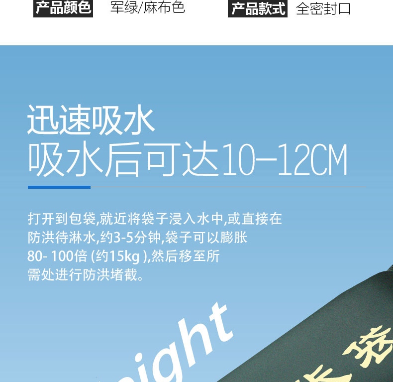 產(chǎn)品功能:自吸水,防汛,擋水